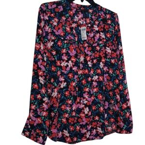 ATTENTION Floral Print Pullover Long Sleeve Blouse Size Small NWT