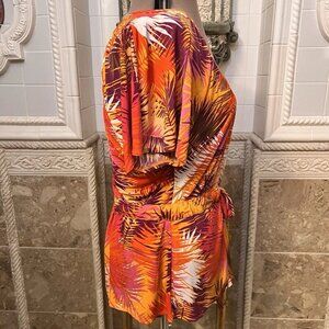 ATTENTION. Size 2X . Stretch Orange Square Neck Pullover Belted Top. Shoulder to hem 30". Bust 22/44" unstretched. Machine wash. Poly spandex. Sash belt with casing.