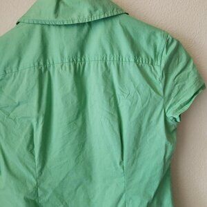 Cute y2k button up top slightly cropped, a little bit of stretch in the fabric. Very preppy office siren. Pretty green color.