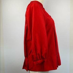 Gorgeous ATTENTION RED 3/4 SLEEVE PLEATED RUFFLE BUTTON TOP. Great Condition!