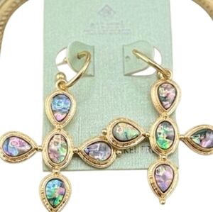 🔹️ ATTERRI🔹️ Beautiful Gold Abalone Shell Statement Drop Cross Earrings