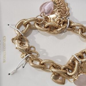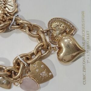 🔹️ATTERRI 🔹️Cubic Zirconia & Semi Precious Stone Charms Gold Bracelet NWT ✨️🤍