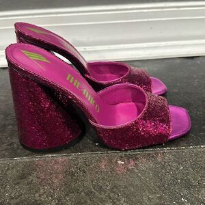ATTICO Devon Fuchsia Mule Heel Pink Glitter Sparkle 37.5 NWOB