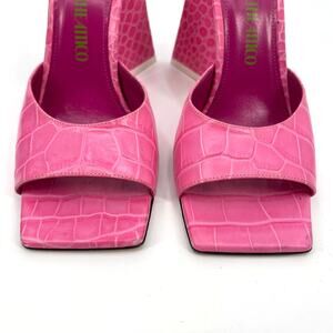 ATTICO Devon Mules Hot Pink Croc Embossed Leather Size 8 Sandals Heels Sexy Fun