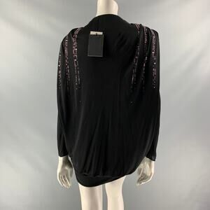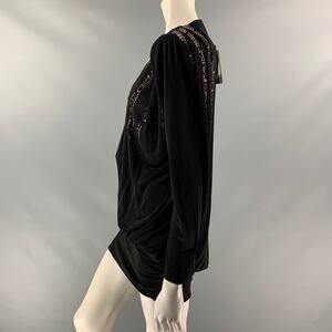 ATTICO Size 4 Black Viscose Beaded Deep Neck Dress