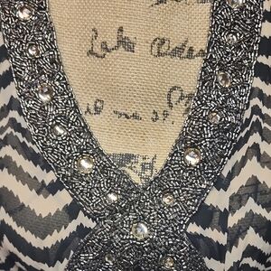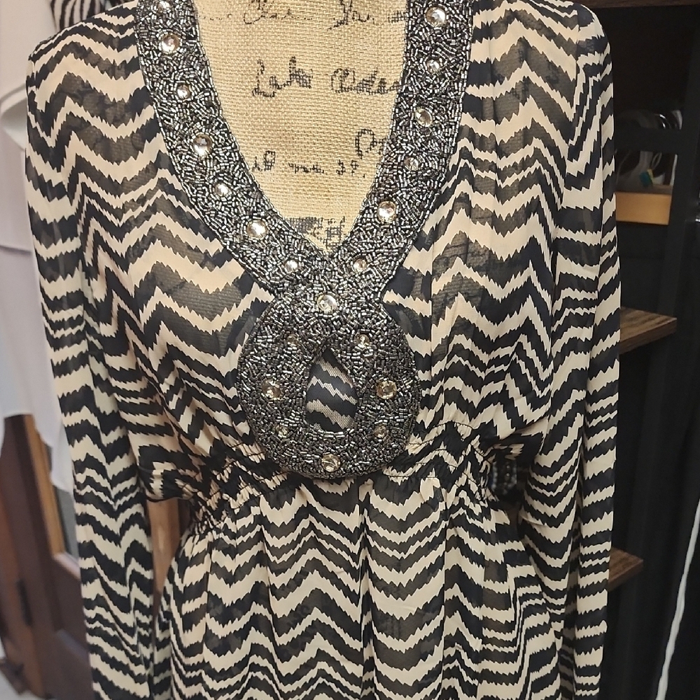 This Attitudes by Renee is featured in a black and tan chevron print with intricate detailing. Perfect for any occasion. Size Medium. New with tags...