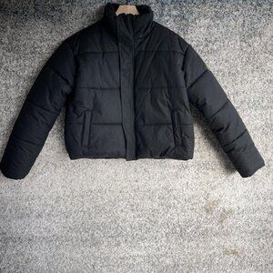 ATWYLD Jacket Womens Large Black Cropped Puffer Quilted Zip Front High Collar