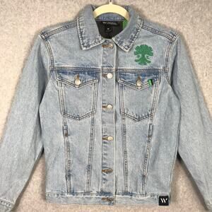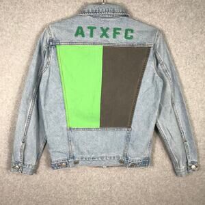 The Wild Collective ATXFC Austin Texas Jacket Womens XS Jean Denim Soccer Logo Embroidered MLS Officially Licensed Sporty Streetwear