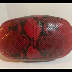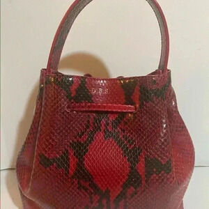 AU printermps snakeskin print leather satchel handbag with gold tone hardware main compartment 1 zip pocket closure at interior wall leather lining lining have minor stains logo at back hight 9” width 10.5” depth 4.5” strap drop 6” Drawstring closure at center The dimensions are based on approximately measurements before placing an order please check take a moment to view all photos using feature for a closer look