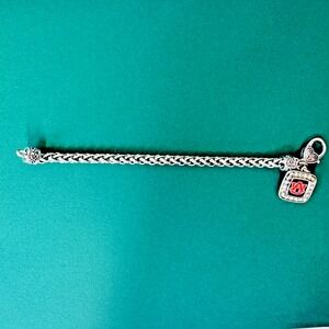 AUBURN UNIVERSITY Silver Tone Bracelet Rhinestones 7.75" Long Heart Lock Closure