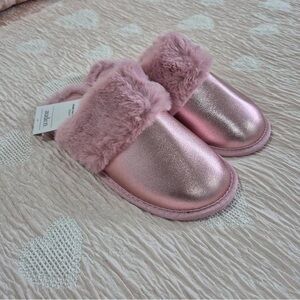 AUDEN Pink Shimmer Furry Slip-On Slippers Large 9/10 Womens