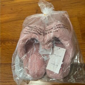 Soft and plush pink slippers by Auden. Ideal for comfort and relaxation.