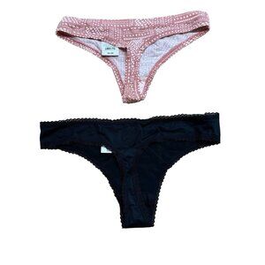AUDEN UNDERWEAR THONG LOT OF 12 BLACK LACE PINK DOTS SIZE M NEW