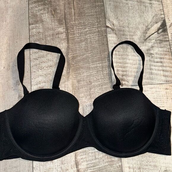 Excellent use condition bra made by AUDEN-size 40 C- three hook and eye closure. Back part of the bra is sheer, underwire with light padding. Lightly lined strapless bra style
