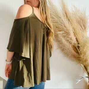 AUDREY 3 +1 Olive Green Cold Shoulder Tank Blouse Top Boho Bell Peasant Shirt S