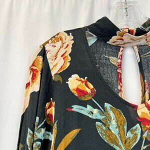 AUDREY 3+1 Womens Multicolor Floral Keyhole Neck Long Sleeve Tunic Blouse Sz S/M