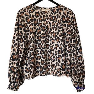 AUDREY 3+1 Leopard Print Cropped Long Sleeve Top