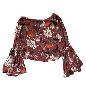 AUDREY Cropped Bell Sleeve Floral Top Size Small