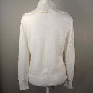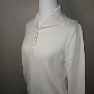 AUGUST SILK CREAM SWEATER BUTTON UP COLLAR BUTTON CUFF WOMENS SIZE LARGE