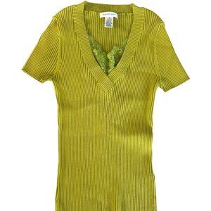 AUGUST SILK Chartreuse Green V Neck Top Size Medium