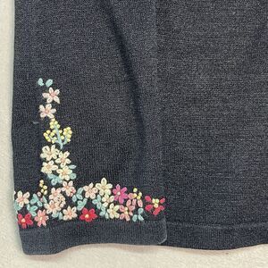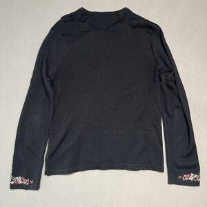 AUGUST SILK Embroidered Flowers 100% Silk Black Knit Open Cardigan XL Grannycore