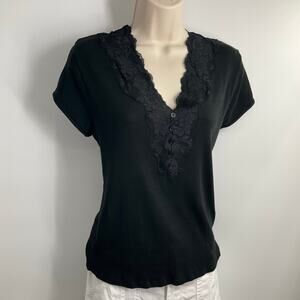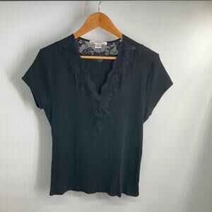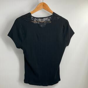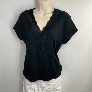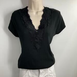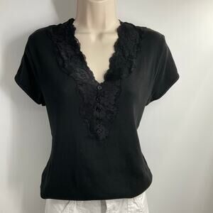 AUGUST SILK VIntage 90s Y2K Black V-neck Lace Top Fairy Festival whimsigoth XL