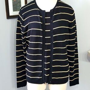 AUGUST SIlk sweater set, tank and button up. Size large. Black with gold strip.