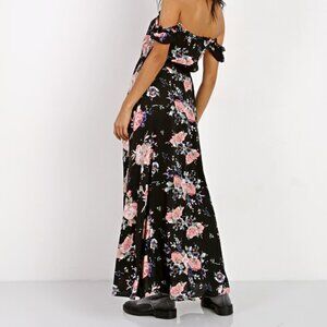 Gorgeous day dress in Auguste's exclusive vintage-inspired floral print with a button-up front, drawstring waist, front split and versatile frilled sleeves that can be worn on or off the shoulder.