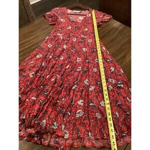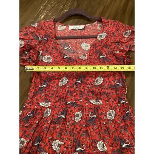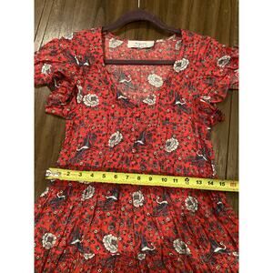 AUGUSTE Valentina Fiesta Day Dress Off Red Metallic Cranes short sleeve midi 2