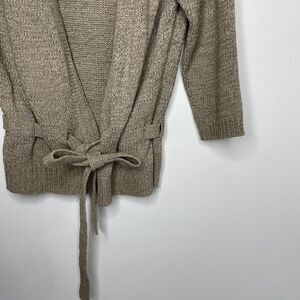 AUGUST SILK Womens Petite Tie-Waist Cardigan Knit Sweater Sz PL Brown 3/4-Sleeve