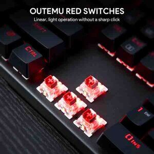Outemu Red Switches: Outemu Red switches are notable for their light and linear tactile feel and quiet activation. On this model, the switches are encased in an extra protective layer so as to prevent dust and grit from getting into the mechanism, and the reinforced switch body prevents keycaps from falling off when things get intense.