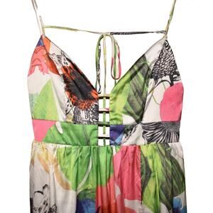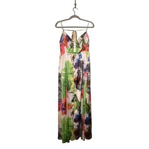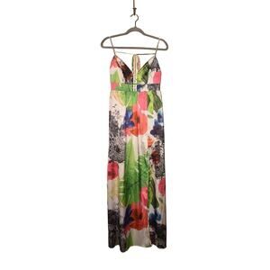AURA $165 Vibrant Floral Flowy Maxi Dress Plunging Neckline Large