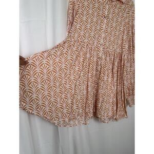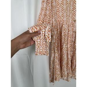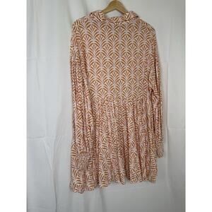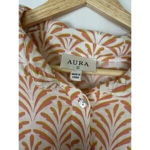 AURA Printed Floral Button Front Smock Coral Yellow White Dress Size Large