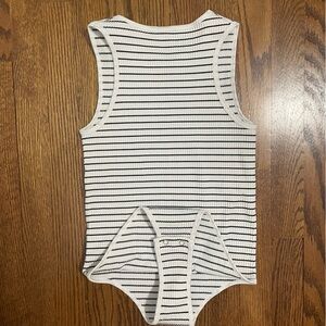 AURA Ribbed White Body Suit Tank Black Stripes, Size Small, NWOT