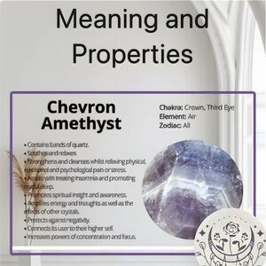 When I first started collecting Chevron amethyst, I didn’t know what to expect. When my first one arrived in the mail and I unwrapped it and held it it was an overwhelming feeling of peacefulness. I felt stable. I felt like I was solid on the ground but yet on fire with just energy at the same time it hit me in my heart chakra I don’t know what chakra dream amethyst specifically is for but I am going to find out and include it in the pictures.