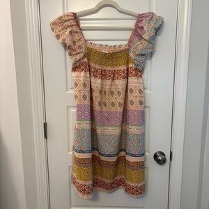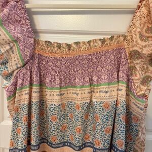 AUREUM Cottagecore Prarie Boho Floral Paisley Dress Size L Pockets Multicolor