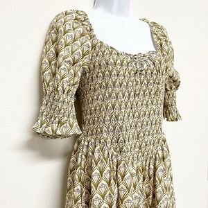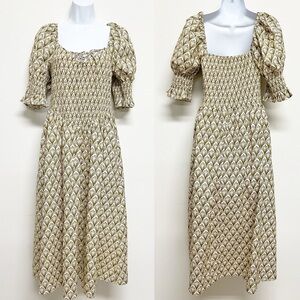 AUREUM The Label Womens The Nikkia Olive Cream Botanical Print Midi Cottagecore Dress Size S
