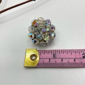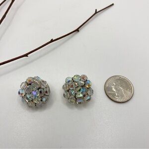 AURORA Borealis Clear Crystal Beaded Cluster Clip-On Vintage Earrings