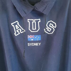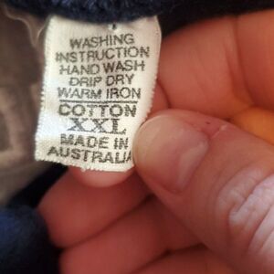 Made in Australia from soft, slightly brushed cotton—dark blue with embroidered wording and the country’s flag.