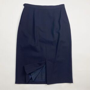 AUSTIN REED Navy Blue Wool Classic Vintage Fit Pleated Straight Skirt - Size 8