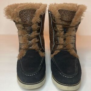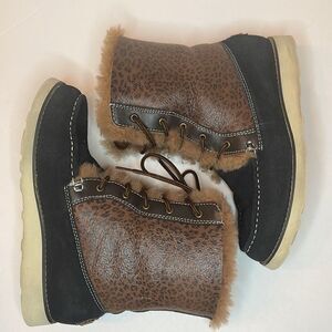 AUSTRALIA LUXE COLLECTIVE Yael Sherpa Animal Print Lace-Up Boot
