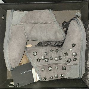 AUSTRALIA LUXE COLLECTIVE sz5/6 "ANGEL" GREY STUDDED DOUBLE-FACED SHEEPSKIN BOOT
