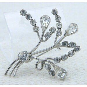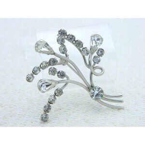 AUSTRIA Signed Silver Tone Clear Rhinestone Pin