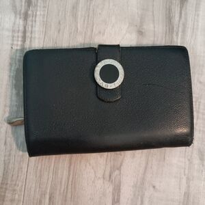 AUTH BVLGARI BIFOLD GRAIN CALF LEATHER LONG WALLET PREOWNED BLACK MEDIUM