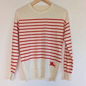 AUTH Burberry Striped Sweater Embroidered Logo Cotton Cashmere Blend Size XS/S