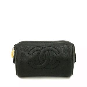 AUTH CHANEL CC Logo Caviar Skin Cosmetic Pouch Mini Bag