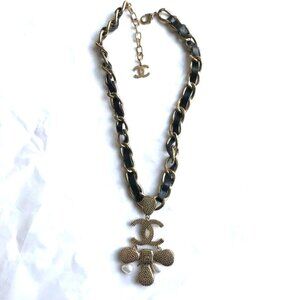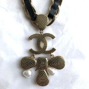 Chanel CC Genuine Leather & Pearl Vintage Choker/ Necklace.