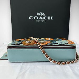 AUTH Coach 1941 Dinky with Glitter Tea Rose Bag, Dust Bag, Gift Box Steel Blue