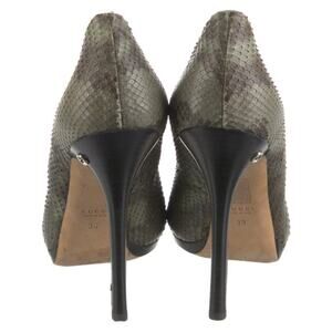 AUTH GUCCI Green Python Snakeskin Platform Pump Stiletto Heels Size IT 39/US 9