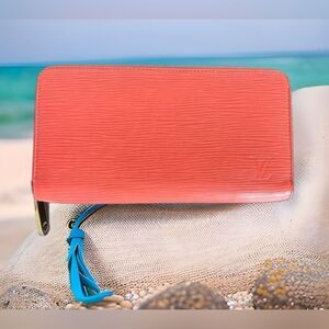 Very rare Louis Vuitton, epi- wallet. This color was only sold in certain stores and places like Hawaii. Very good used condition with only minor signs of wear. Inside is pretty much perfect! Zippers work very well. Pet and smoke free environment.